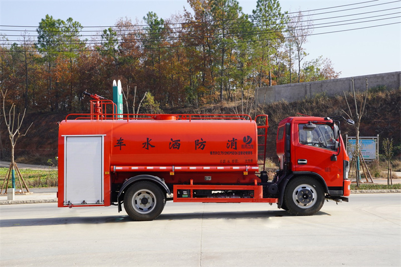 消防灑水車,又稱消防灑水兩用車、灑水消防兩用車、森林消防灑水車、學校消防灑水車、機 場消防灑水車、社區消防灑水、街道及鄉鎮和鄉村消防灑水功能。是一款集消防車和灑水車于一體的 兩用車,是介于消防車與灑水車之間,具有消防灑水一體化用途,與消防車相比雖缺少器材箱,但與 消防車的射程相同,具有同樣的消防功能。 功能介紹:與灑水車相比,繼承了灑水車的全部功能,同時也彌補了灑水車射程小,壓力小等 問題。消防灑水車除了裝備消防水泵及器材以外,還設有較大容量的貯水罐及水槍、水炮等。可將水 和消防人員輸送至火場獨立進行撲救火災。它也可以從水源吸水直接進行撲救,或向其他消防車和滅 火噴射裝置供水。優于消防車的功能:因為沒有消防車器材箱,底盤高度及車輛寬度更適應山間、鄉 鎮、鄉村的路況,是森林消防、鄉鎮和鄉村消防的有利消防工具